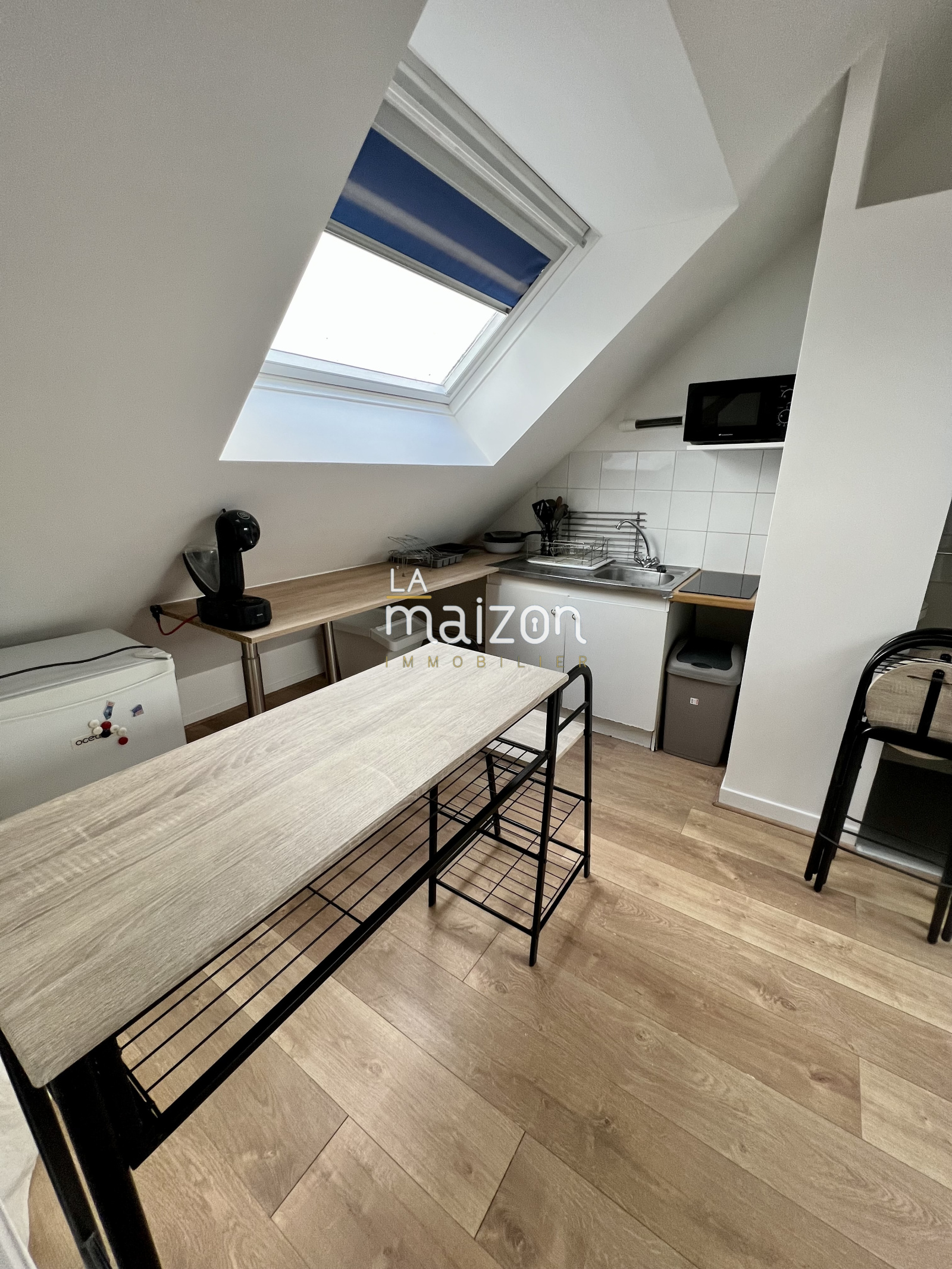 Proche du centre-ville et des commodités, la Maizon Immobilier vous présente ce charmant T2 meublé au dernier étage d'une petite copropriété de 6 appartements. Il est composé d'une piéce de vie, d'une chambre, d'un petit coin cuisine et d'une salle d'eau. Le tout sur parquet et en bon état.