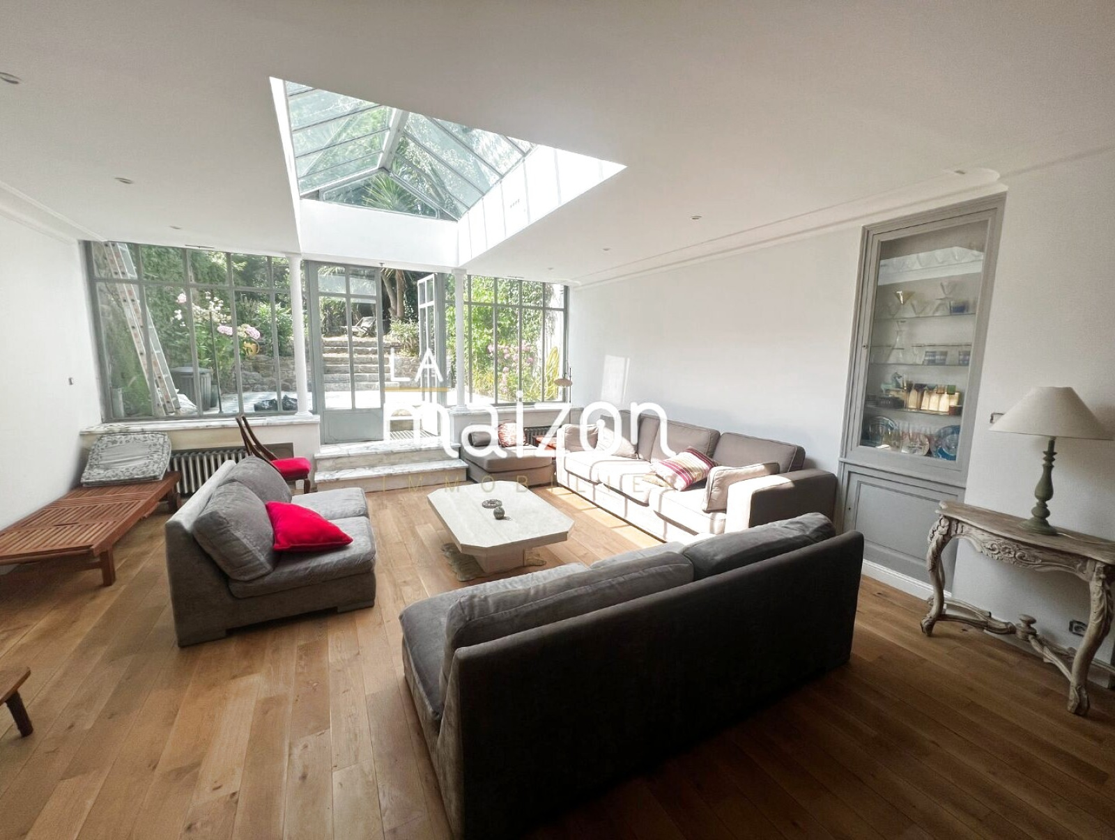 Au rez-de-chaussée, une belle entrée dessert une grande cuisine et salle à manger d’une superficie de plus de 21 m² ainsi qu’une splendide pièce de vie de 52 m² rendue lumineuse par une belle verrière qui donne un fou à cet espace. Puis vient l'accès à la terrasse exposée sud-ouest !