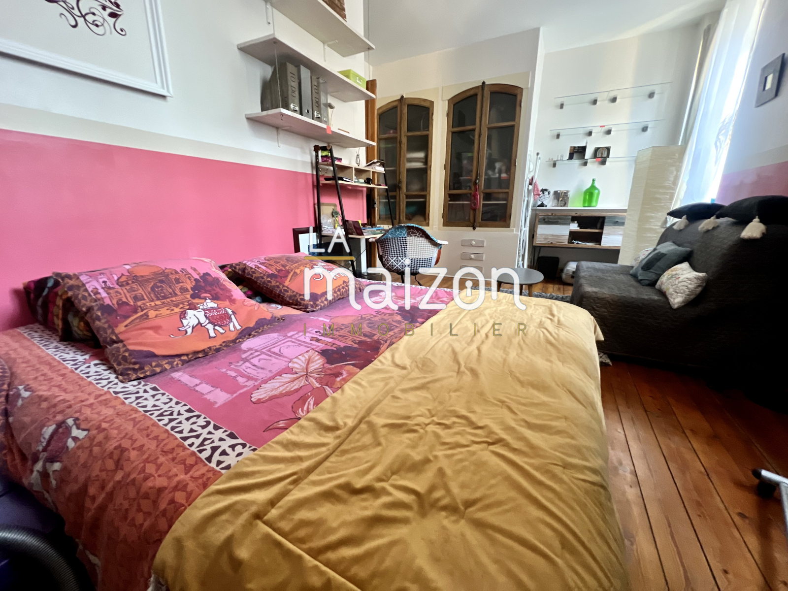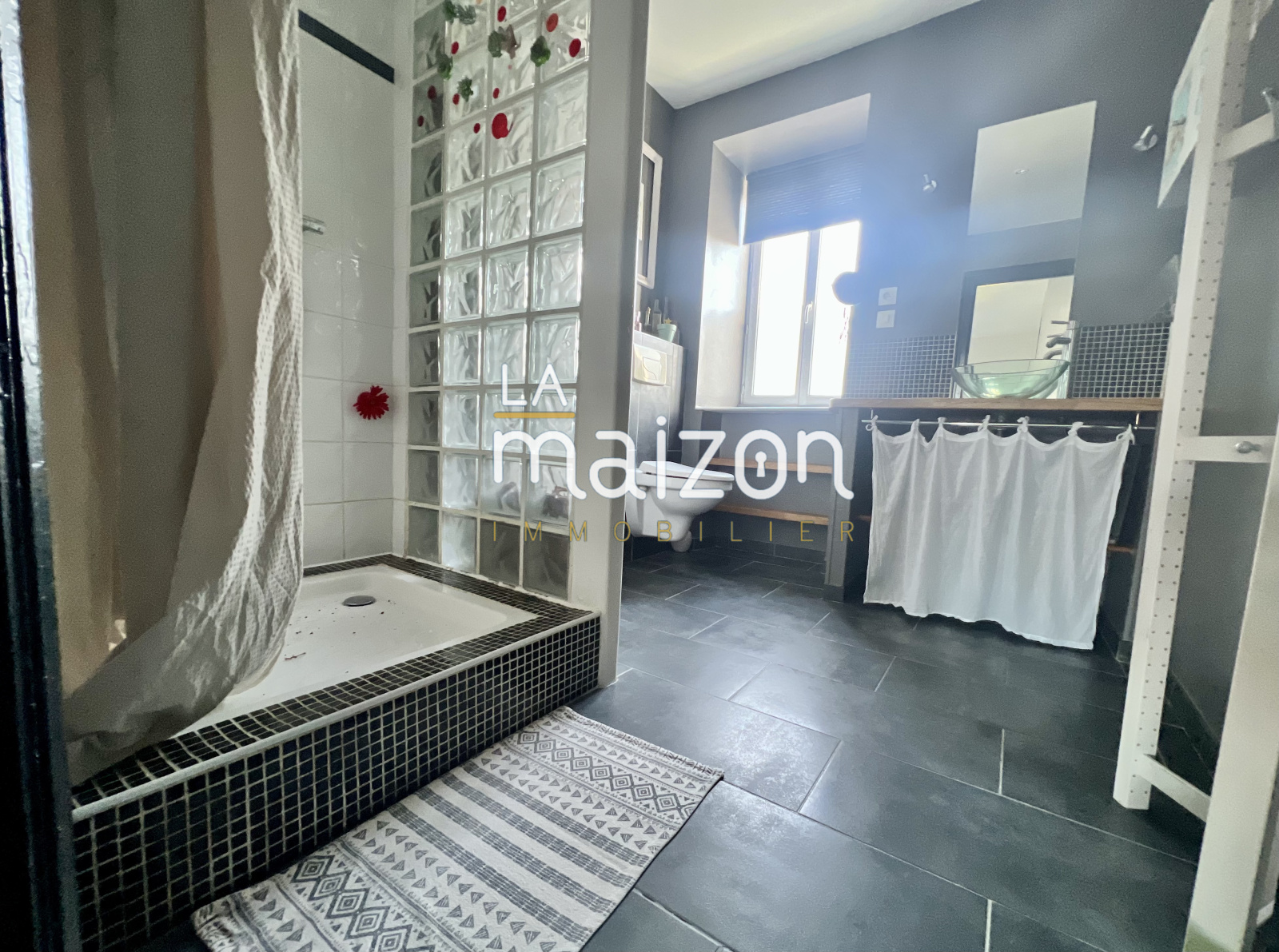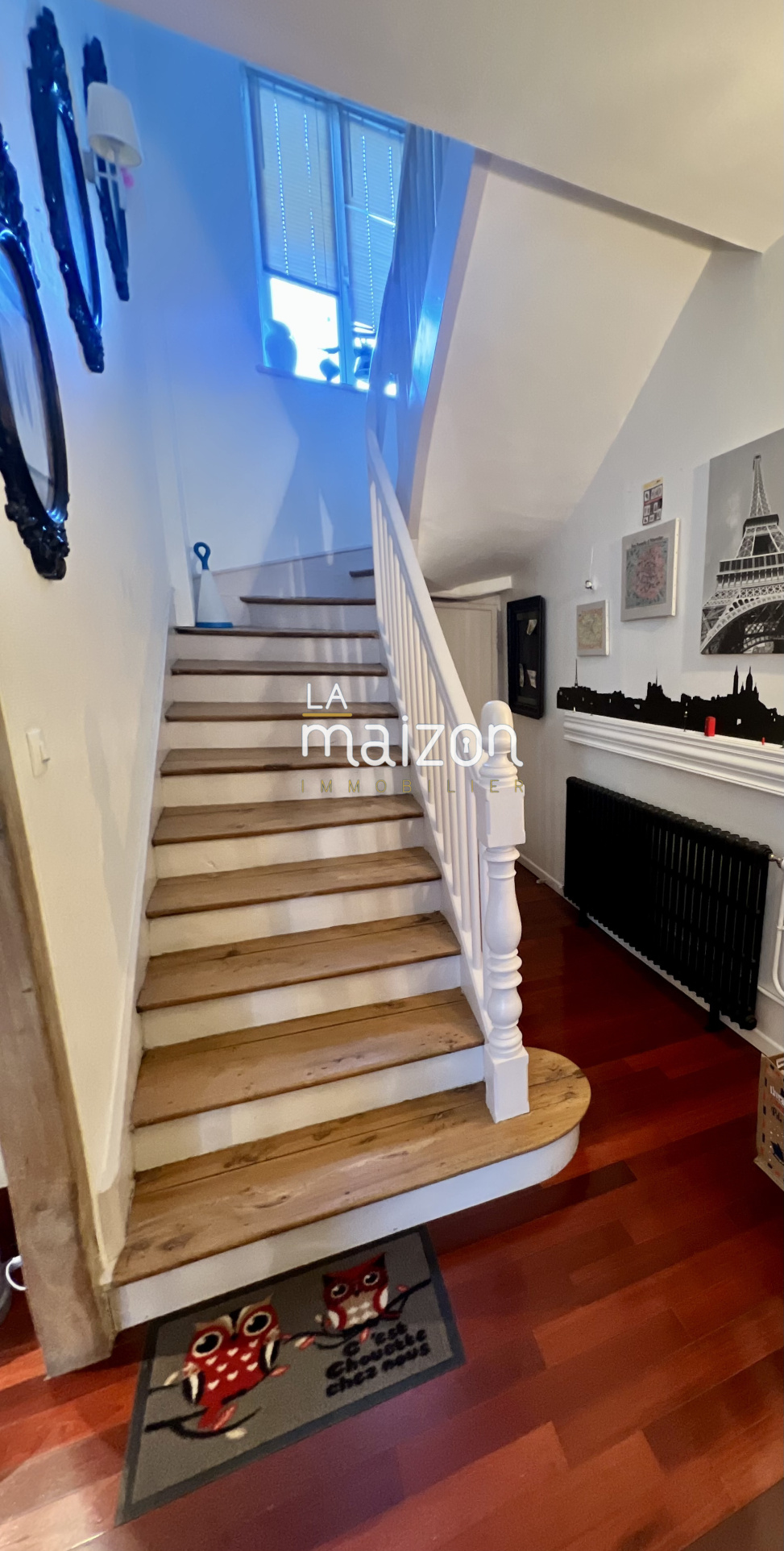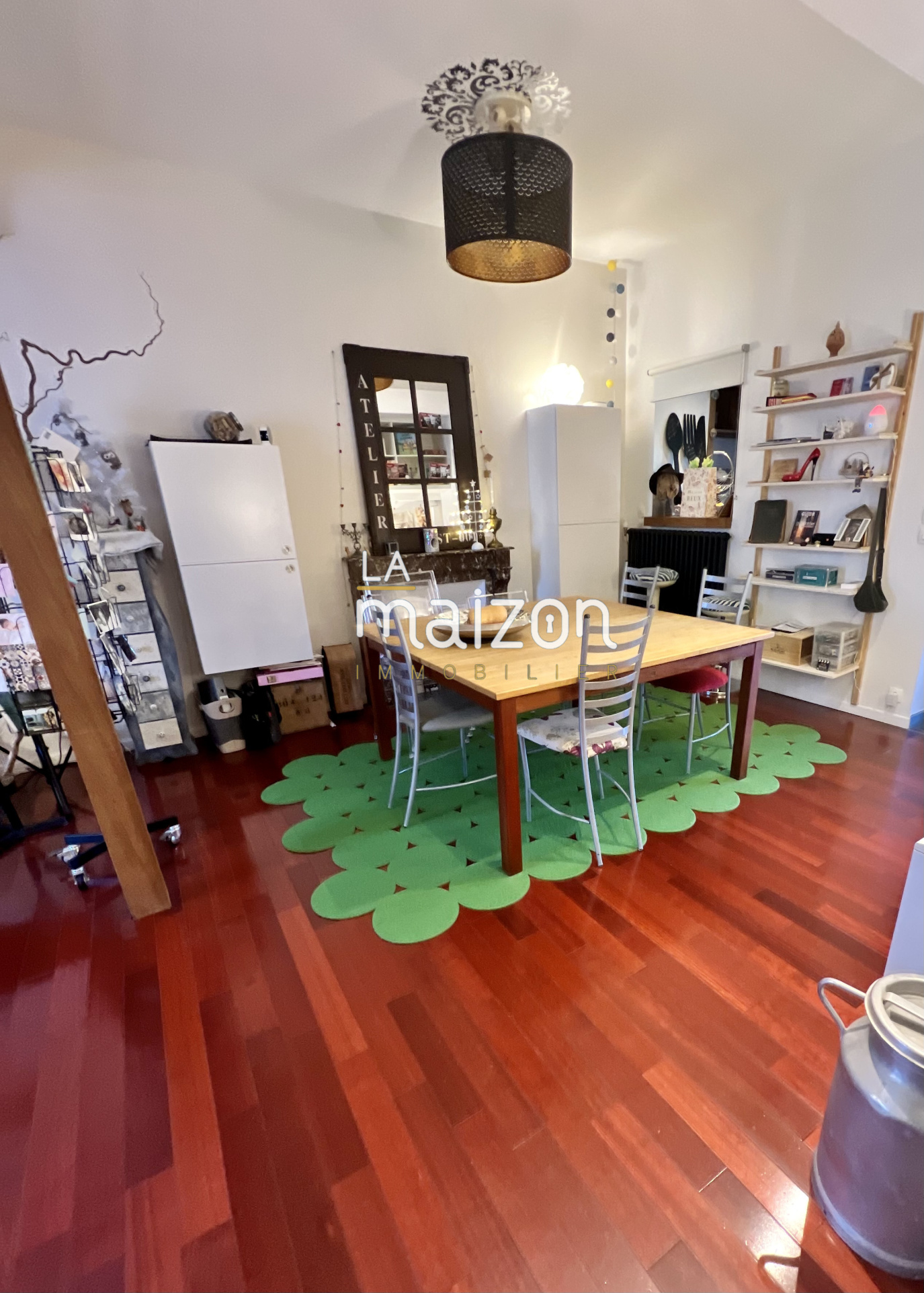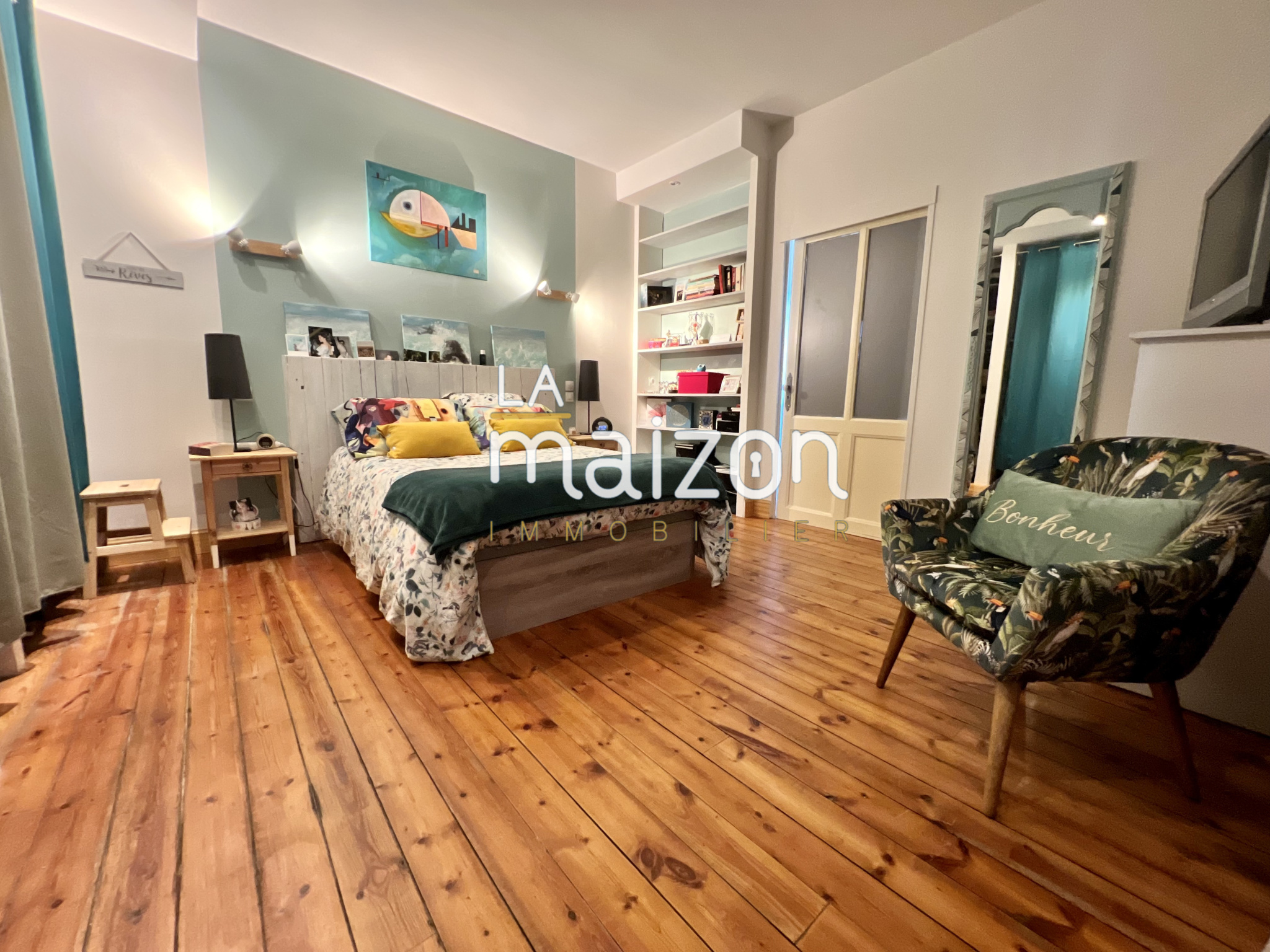 Elle est composée d'une belle pièce de vie de 40 m² avec un accès direct à la cuisine et son ilôt central. Les étages offrent 5 grandes chambres, 2 salles d'eau et un coin bureau. Le tout est sur parquet.